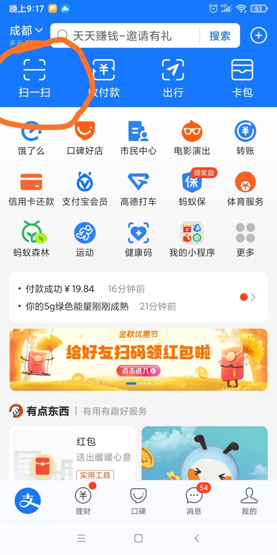 保存到相册,支付宝里面扫码,领红包